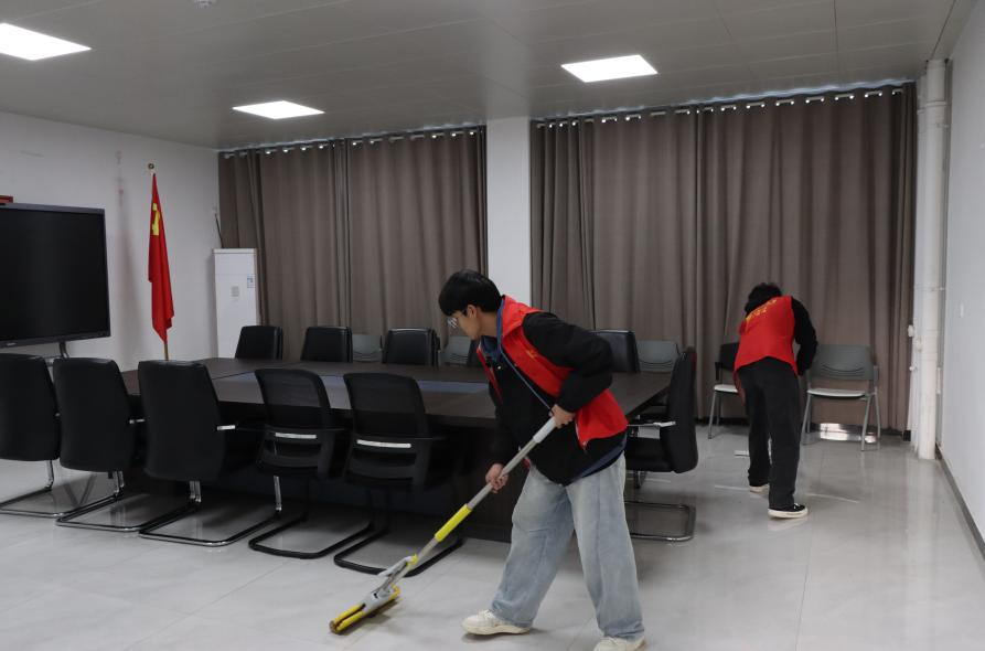 校庆前夕,为了保障校区五十周年校庆活动能有条不紊地开展,专职组织员胡晨佳同志对党员发展对象、入党积极分子们进行了志愿服务培训及准备工作。其次,组织服务队同学于明德书院办公区域进行了指示牌清理、打扫地面、清洁电梯、擦拭门窗、打理书院门牌等一系列志愿活动,同学们志愿热情高涨,认真打扫每个角落,尽最大努力营造出整洁卫生的环境,为迎接校友的回归积极做好准备。与此同时,服务队同学们也在校园主要道路和公共区域悬挂校庆主题横幅。一条条横幅传递着对学校的深情祝福,引来师生驻足关注,进一步营造了喜迎校庆的热烈氛围。