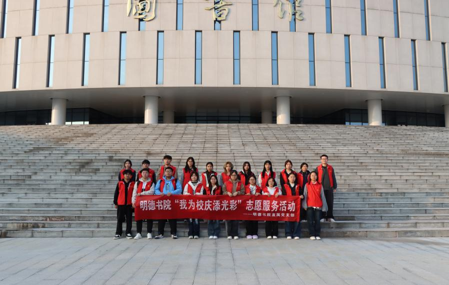 时间:2025年10月27日 10:11 来源: 作者:胡晨佳 阅读: 次为深入贯彻落实党的二十大精神和习近平总书记重要指示精神,进一步发扬党员的爱党爱国爱校精神,明德书院直属党支部在学校建校50周年之际依托主题党日活动开展“我为校庆添光彩”志愿服务活动。