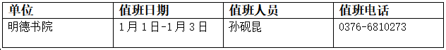 明德书院2026年元旦节假期值班表