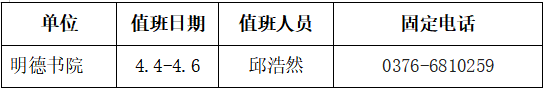 明德书院2026年清明节假期值班表